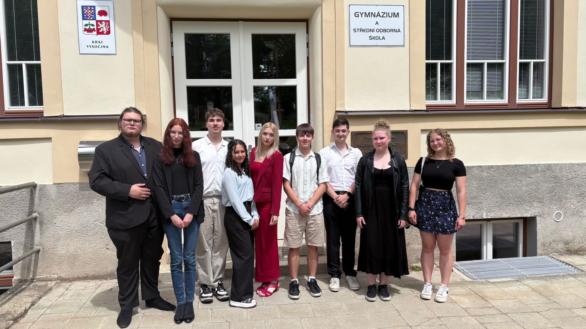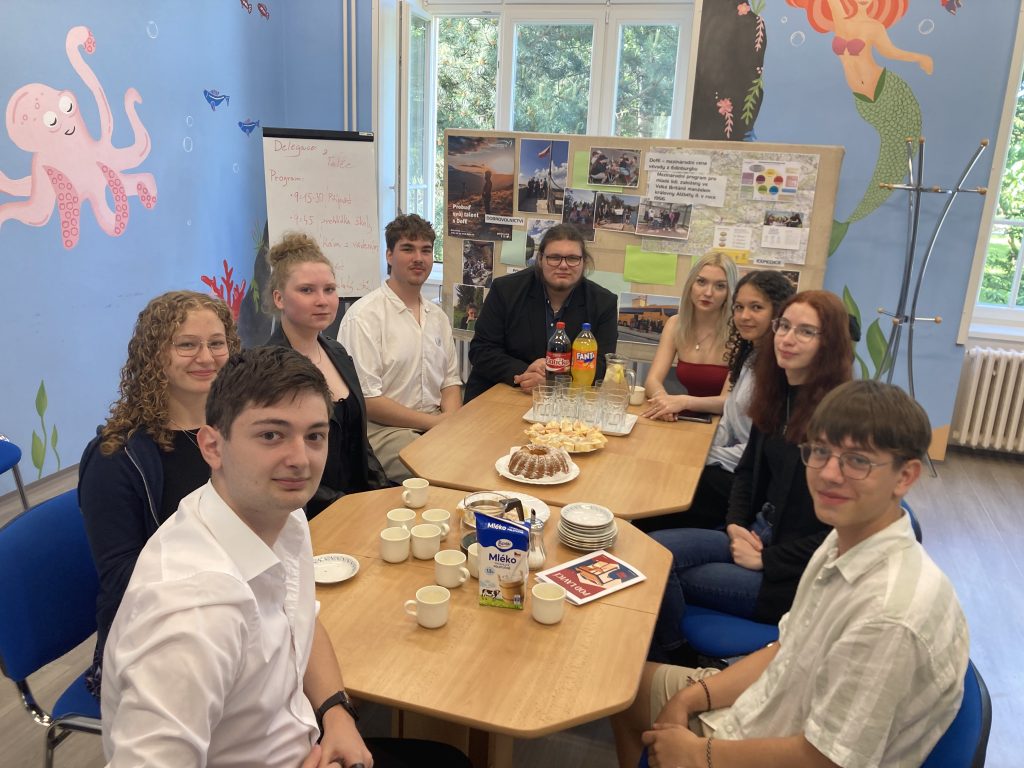 Jedním z cílů Středoškolského parlamentu Kraje Vysočiny, jehož zasedání v Jihlavě se delegáti naší školy pravidelně účastní, je spojovat střední školy napříč krajem. Právě na jednom takovém zasedání se zrodila spolupráce nás a Moravských Budějovic. Styčnými body spolupráce měly být vzájemné návštěvy a velká diskuze o činnosti našich samospráv. Naši kolegové z Moravských Budějovic nás navštívili již v květnu. Byli čestnými hosty na Přednáškovém dni a kromě účasti na přednáškách se jim dostalo i prohlídky našich prostorů a došlo i k debatě o studentských projektech. Naši delegáti pak navštívili spřátelenou školu první pondělí v červnu v doprovodu pana učitele Přibyla, koordinátora studentského parlamentu.