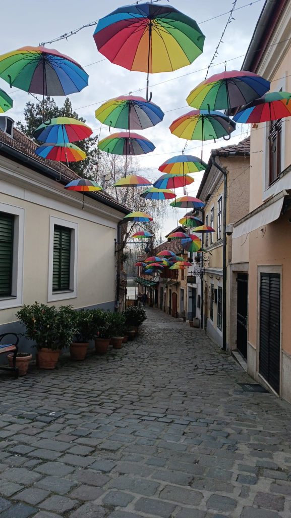 Poslední den jsme strávili ve vesnici vedle Budapešti, která má ale 24000 obyvatel. Je to městečko Szentendre. Zde jsme se prošli a navštívili velmi moderní muzeum. Význam děl byl v maďarštině, a proto jsme mu nerozuměli, samozřejmě. Původně měl být plán jiný, ale bohužel nám poslední den opět pršelo. Toto město je také proslavené výrobou langošů, takže jsme ho samozřejmě museli ochutnat. Ale na oběd jsme jeli do jejich věznice – teda školy. Tam jsme se po obědě dlouho loučili s našimi novými kamarády, a také jsme jim všichni podepsali ceduli z prvního dne. Uvidíme je opět v červnu, kdy oni přijedou sem k nám, do Telče. Pro nás tímto loučením den ale rozhodně nekončil, neboť nás ještě čekala dlouhá cesta domů. Potom, co jsme se došourali na nádraží, tak jsme asi půl hodiny čekali venku v dešti, než se Regiojet uráčil pustit nás dovnitř. Cesta byla horší než posledně, na menu se nacházeli opilí Němci, výpadek elektřiny, a zpoždění skoro půl hodiny. Na vlak, který jede takovou dálku je to super, ale na přestup nám tím pádem zbývalo něco kolem deseti minut. Nevěděli jsme, zda nestrávíme noc v Brně. Z vlaku jsme museli vylézt rychlostí blesku se všemi kufry a pak začal nekonečný sprint. Jako zázrakem naším směrem šel zkušený pán, který nás nasměroval správnou cestou.