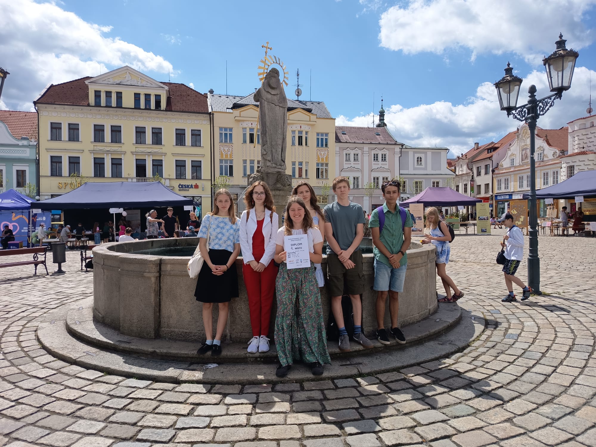 Po nabitých dvou hodinách jsme se přemístili na pelhřimovské náměstí, kde jsme si jen o chvíli později převzali cenu za první místo v kategorii Online časopisy. Ačkoliv v naší kategorii konkurence nebyla velká, máme z výhry radost a je pro nás motivací pokračovat v psaní. Těšíme se na celostátní kolo, které se uskuteční na podzim a jsme zvědaví, kam nás naše cesta se Zpravodajem ještě zavede.