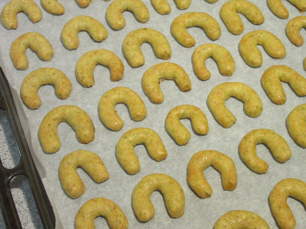 Pistácie si rozmixujeme na jemno. Smícháme je s moukou a s cukrem. Přidáme žloutky a máslo pokojové teploty. Ručně vypracujeme hladké těsto. Přemístíme ho na vál a začneme tvarovat rohlíčky tak, že těsto tence vyválíme. Ani se nemusí podsypávat moukou, má krásnou konzistenci a nelepí se. Rohlíčky klademe na plech s pečícím papírem. Před pečením je potřeme bílkem a posypeme cukrem. Troubu předehřejeme na 180° a pečeme na horní a spodní ohřev 12-15 minut, každá trouba peče jinak. Důležité je, aby po vytažení z trouby byly hezky zlaté.